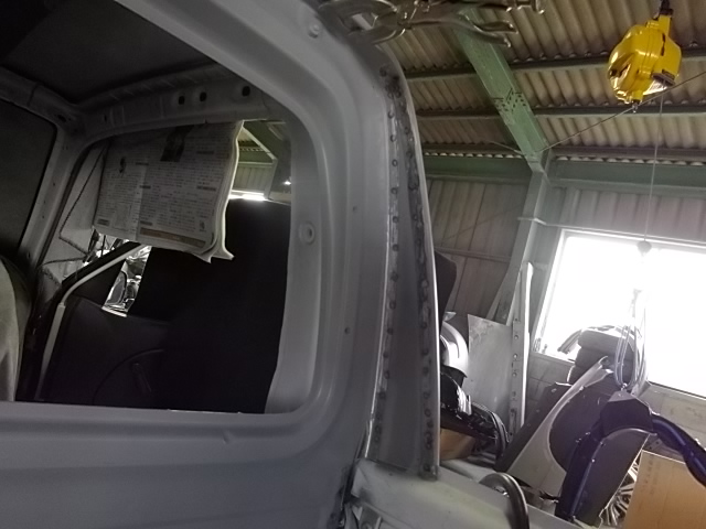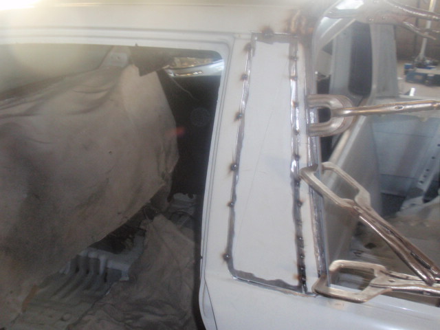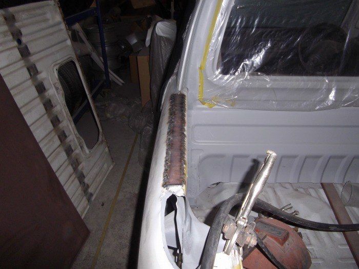 リヤゲートのすきまを合わすため、右サイド側に、鉄板を溶接していきます。