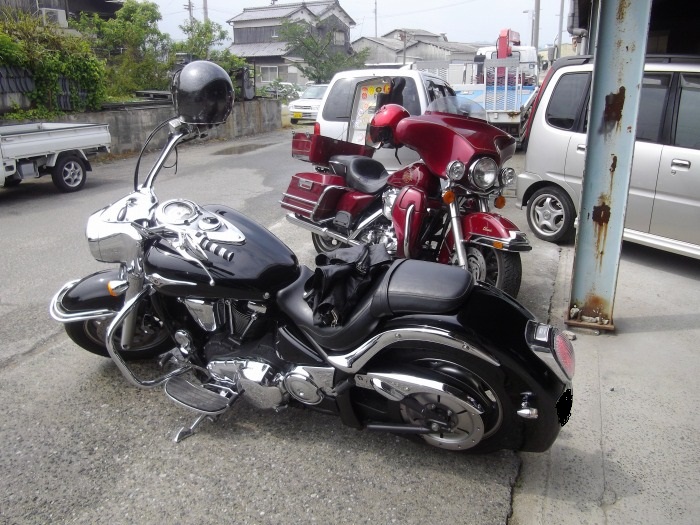 納車の日、雨もあがり、友人のハーレーと共に、ツーリングに行くそうです。
