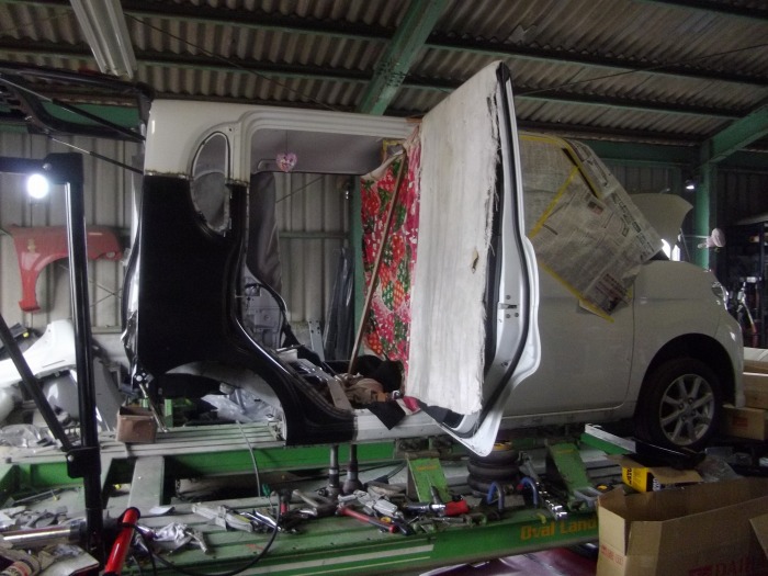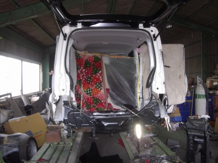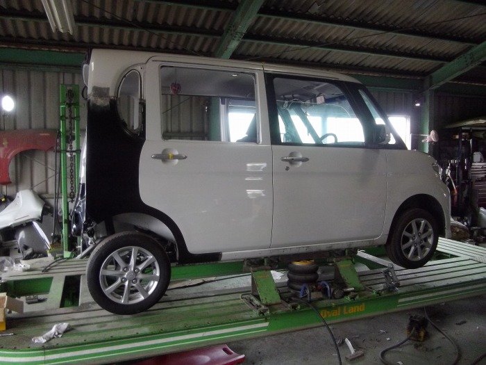 HOME > ギャラリー:キズ・ヘコミ修理 > タント カステム L375 リヤフェンダー バックパネル リヤフロア 交換 事例