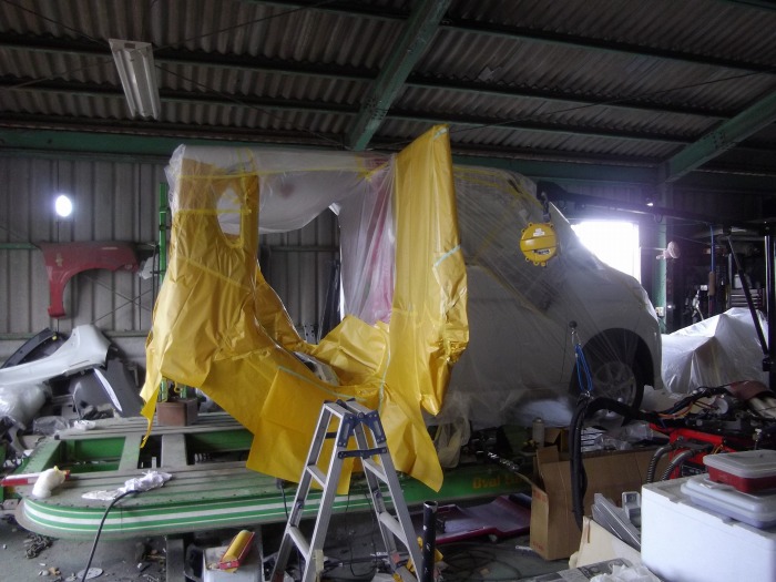 溶接した部分を、パテで成形して、サフェーサーを塗装しました。